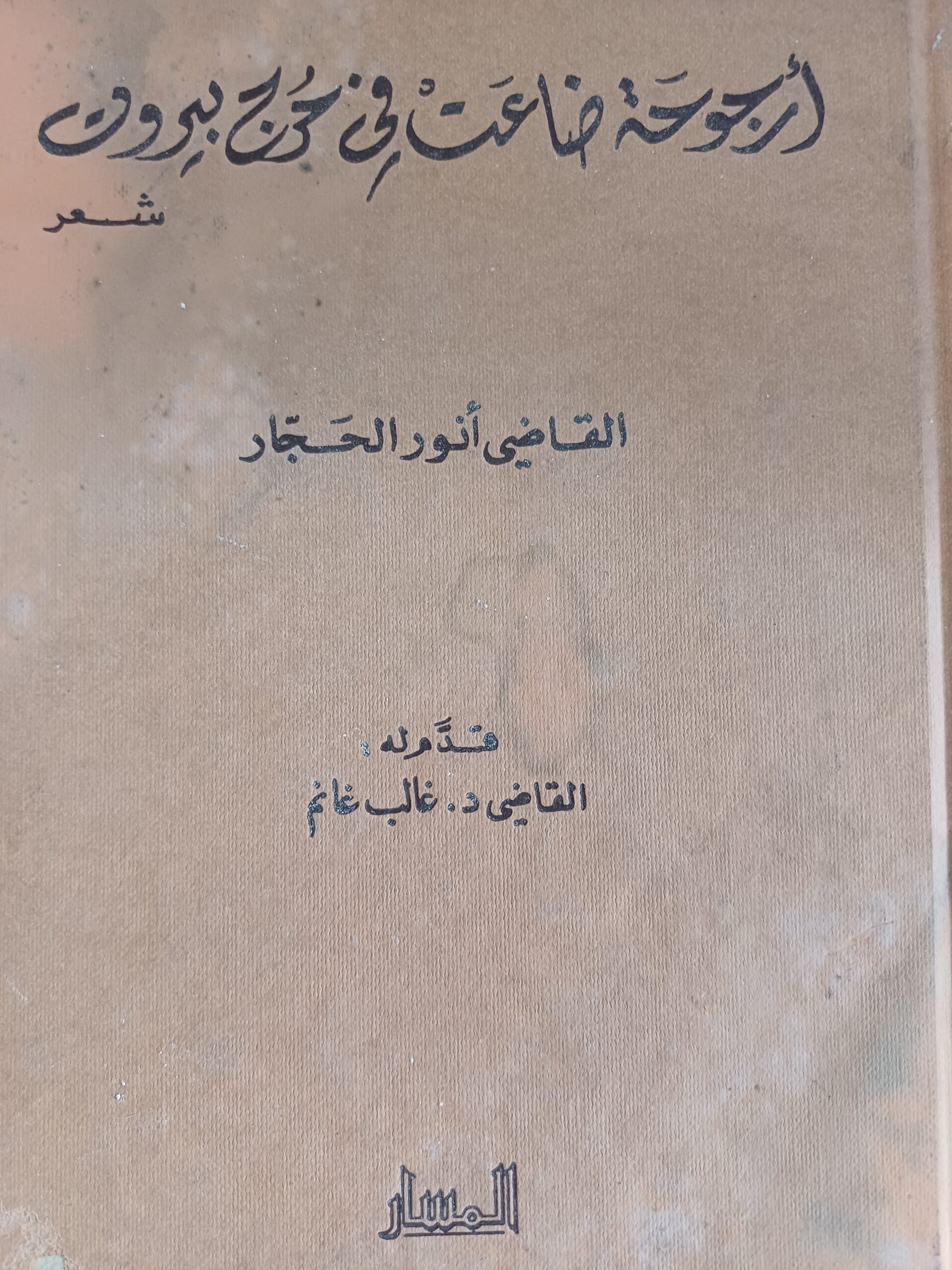 الرقم:724 العنوان:أرجوحة ضاعت في حرج بيروت. المؤلف:أنور الحجار. الناشر:المسار للنشر-لبنان الطبعة الأولى-2000-134ص.