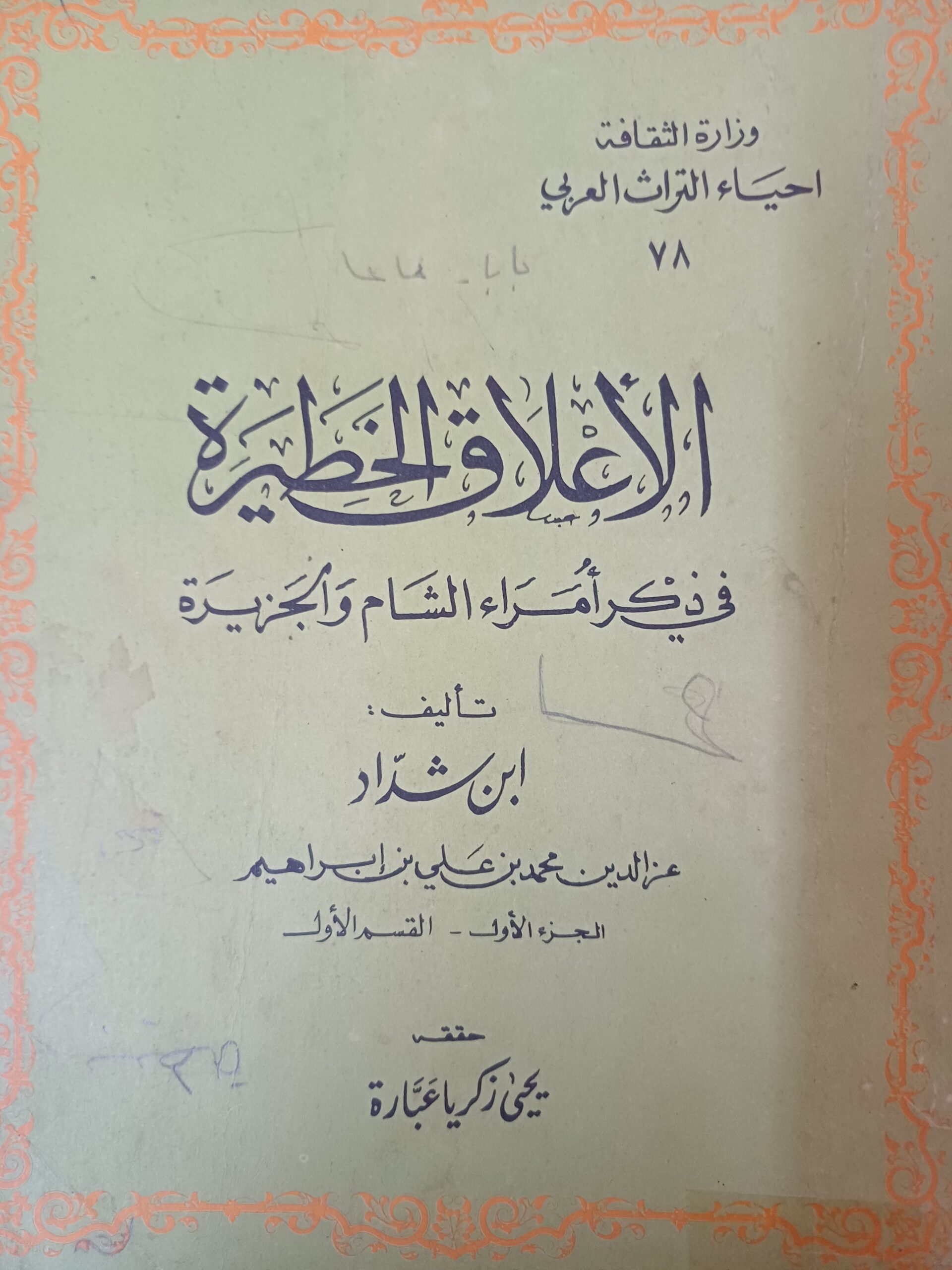 العنوان : الأعلاق الخطيرة في ذكر أمراء الشام والجزيرة.