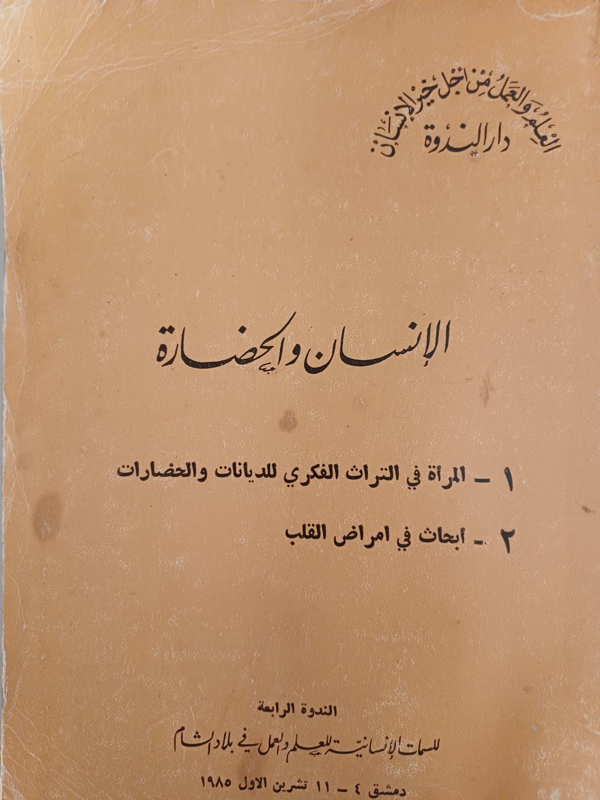 العنوان : الإنسان والحضارة -1-المرأة في التراث الفكري للديانات -2-أبحاث في أمراض القلب.
