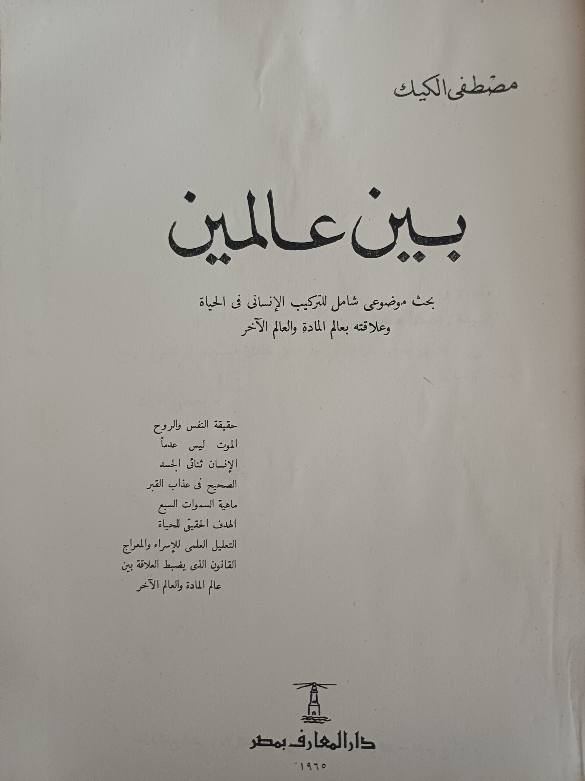 العنوان : بين عالمين – بحث موضوعي شامل للتركيب الإنساني في الحياة وعلاقته بعالم المادة والعالم الآخر.
